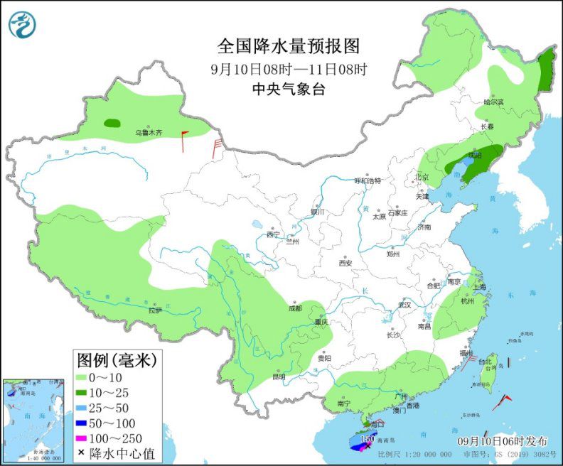 Figure 3 National Precipitation Forecast Chart (08: 00 September 10-08: 00 September 11)